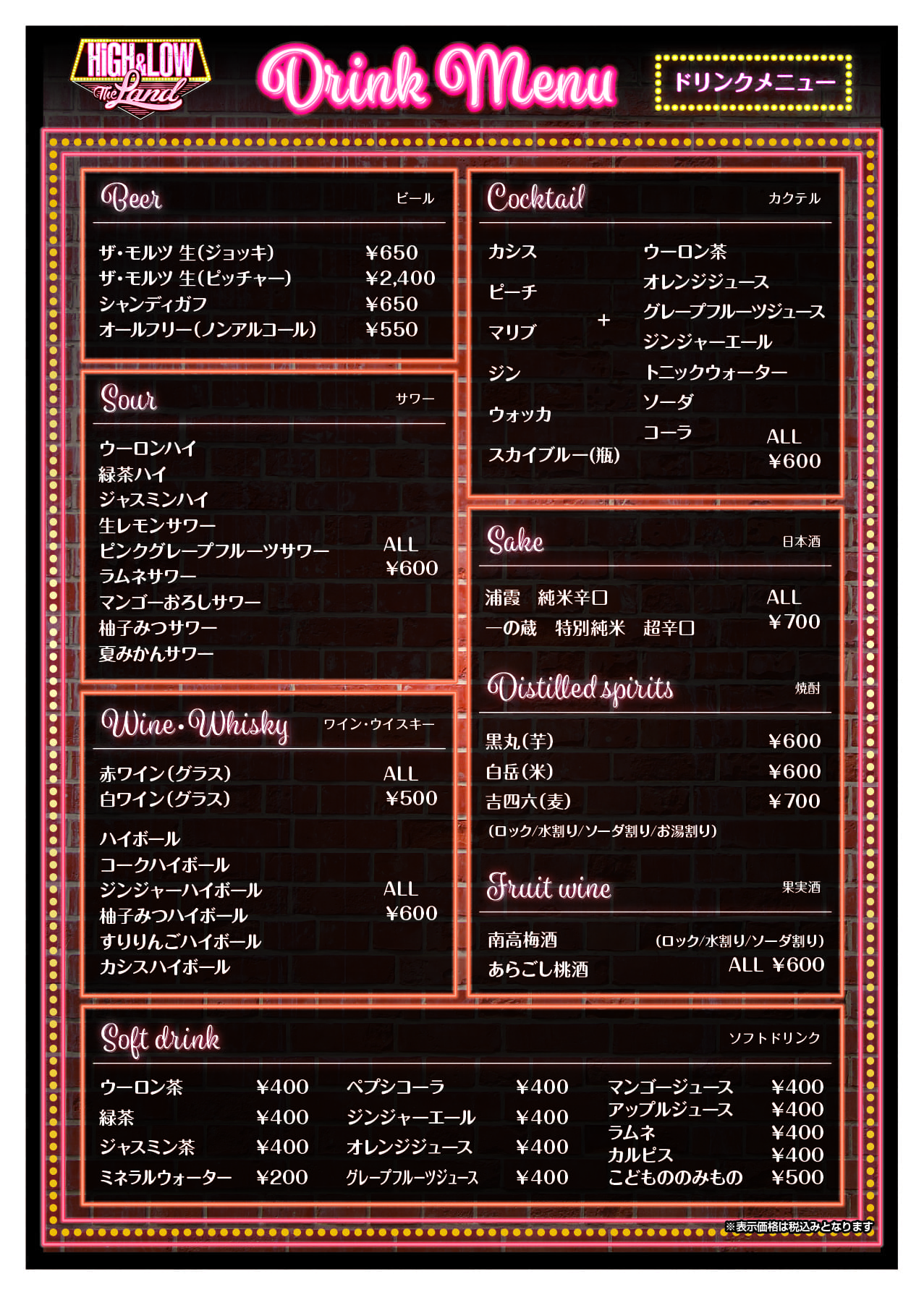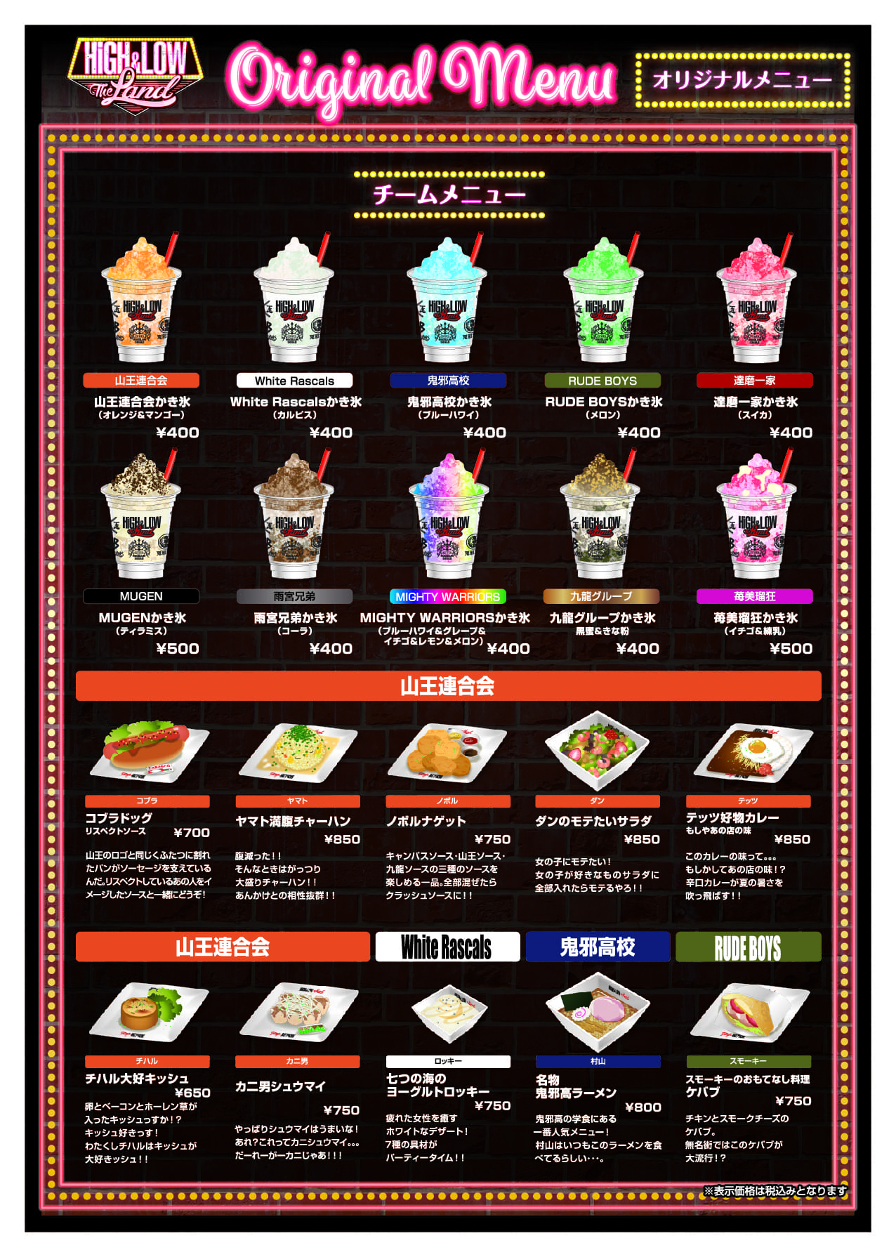 飲食スペースでは「HiGH&LOW」オリジナルメニューをご用意しています!またグッズも販売!