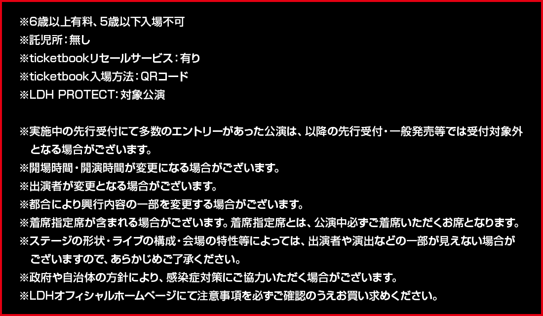 ・対象の先⾏抽選予約にて[全席指定]にご当選されたお客様のみが、後日プレミアムチケット抽選受付のお申込みが可能となります。