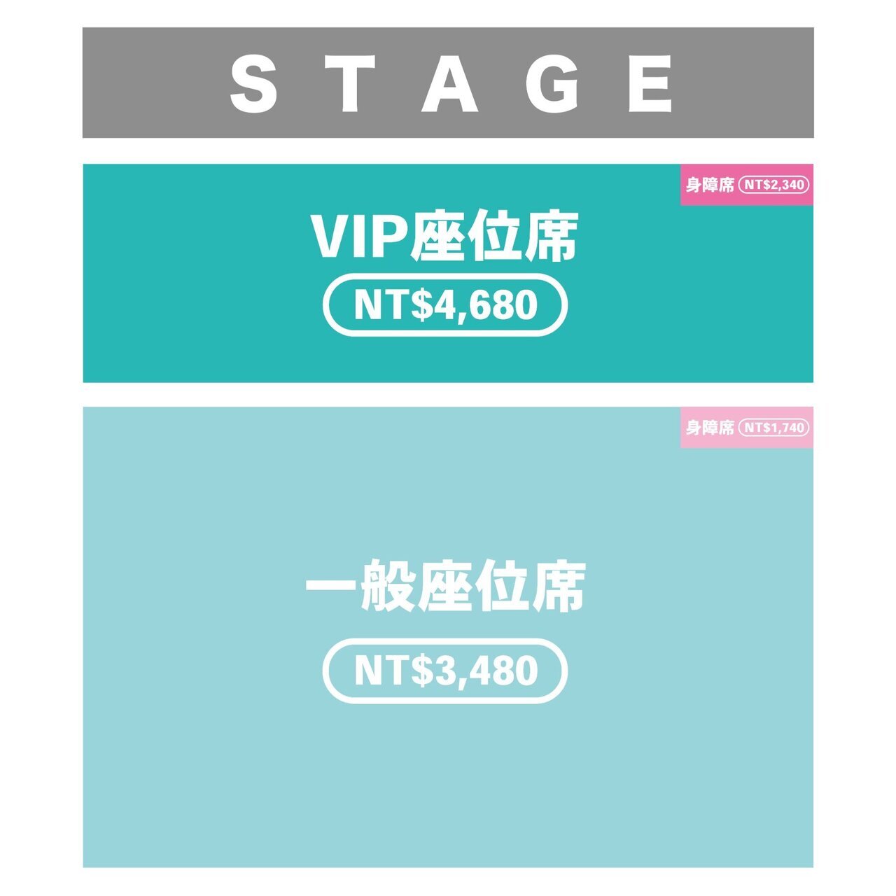 車椅子席:TWD 2,340(NT$2,340)