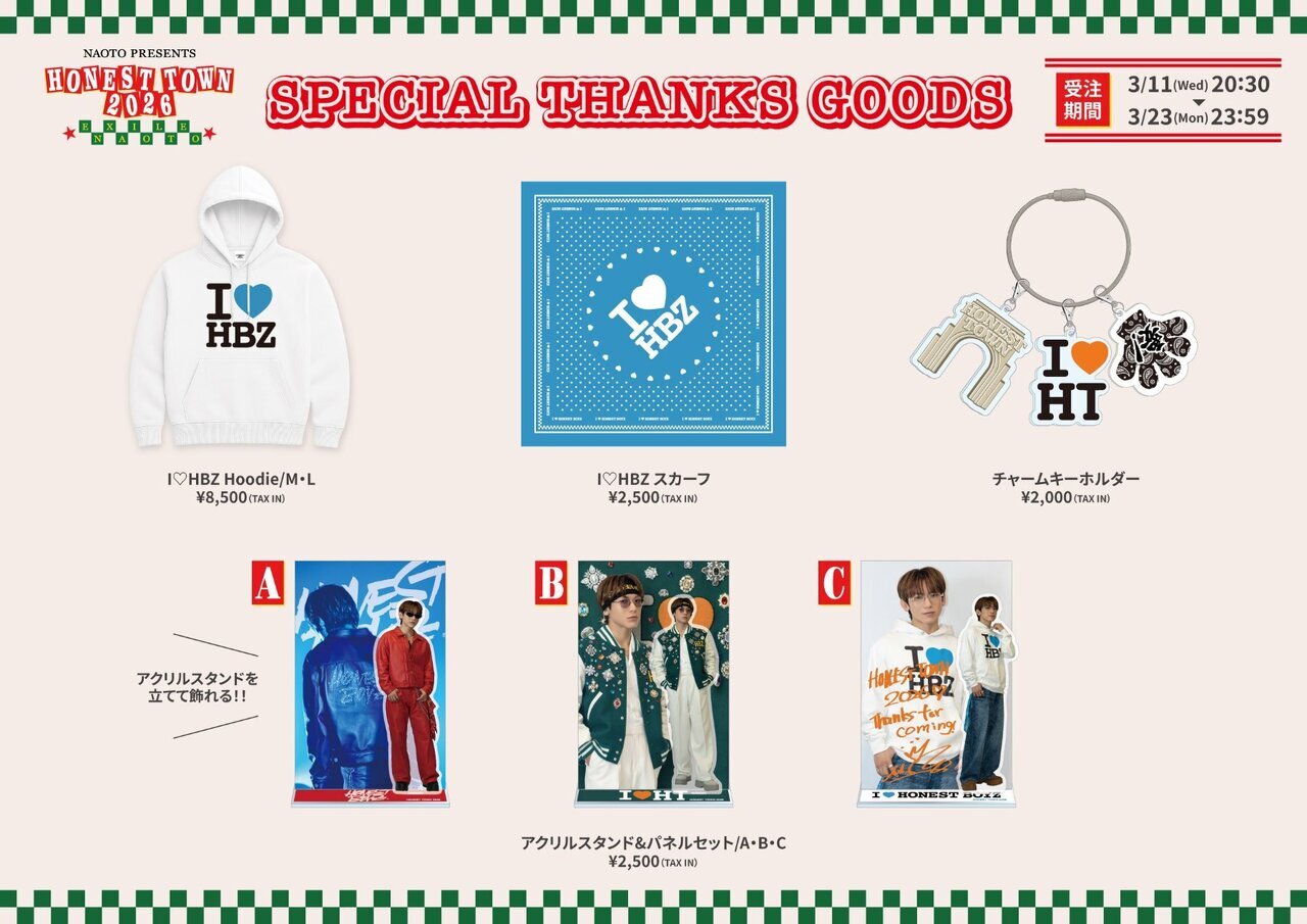 wNAOTO PRESENTS HONEST TOWN 2026xƒcƒA[Š®‘–‚ð‹L”O‚µAŠF‚³‚ñ‚Ö‚ÌŠ´ŽÓ‚Ì‹CŽ‚¿‚ðž‚ß‚½Special Thanks Goods‚ÌŽó’”Ì”„‚ªŒˆ’è!!