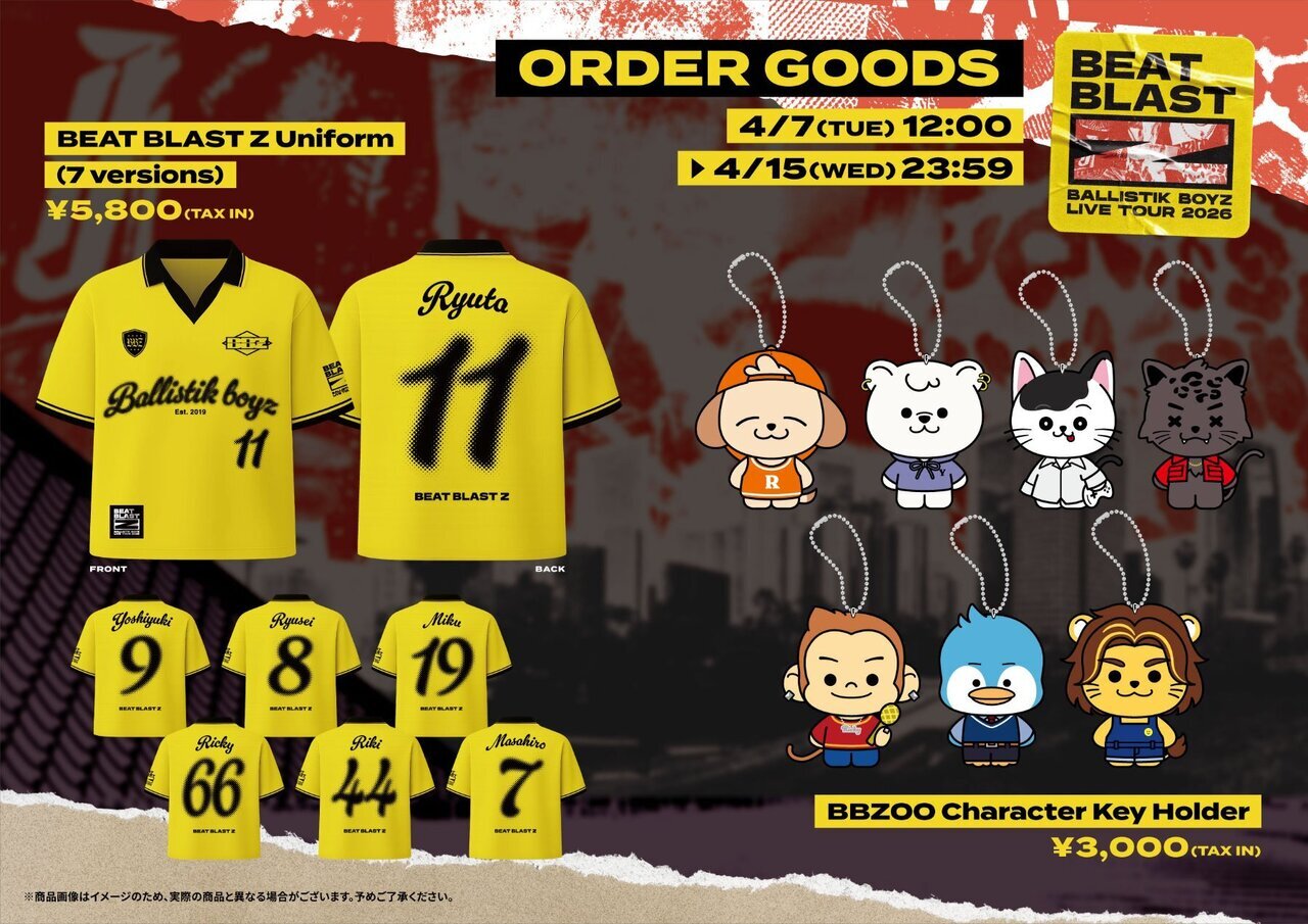 7/8(水)から開催される『BALLISTIK BOYZ LIVE TOUR 2026 "BEAT BLAST Z"』の公演に向けて、受注グッズの販売がスタートしました!!