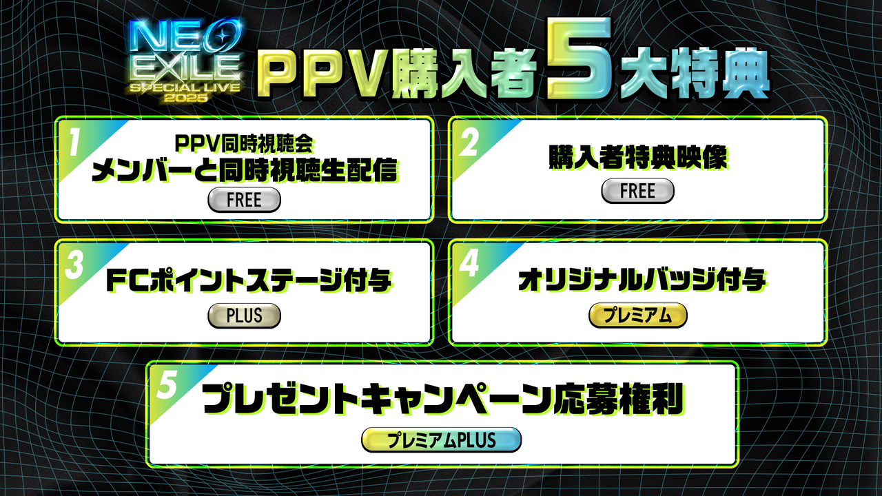 自分だけの『NEO EXILE SPECIAL LIVE 2025』に没入できるマルチアングル版PPVをぜひ体験してみてください!