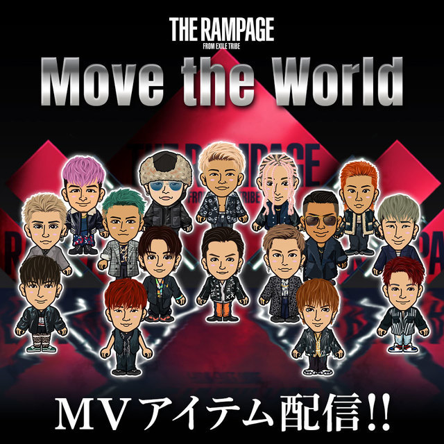 THE RAMPAGE 2019.10.30 【EXILE TRIBE mobile マイページ】THE RAMPAGE「Move the World」MVアイテム配信!! EXILE TRIBE mobile マイページではTHE RAMPAGE 2nd Album「THE RIOT」のリリースを記念して、リード曲「Move the World」のMVアイテムを配信します!! ぜひMVアイテムをGETして、着せ替えを楽しみましょう♪ ※「Move the World」MVアイテムは、THE RAMPAGEメンバーのアバターのみ着用可能です。