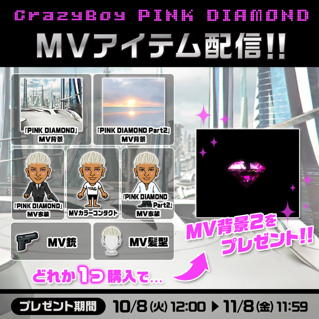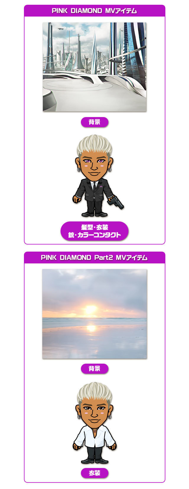 ※「PINK DIAMOND」MVアイテム、「PINK DIAMOND Part2」MVアイテムは、ELLYのアバターのみ着用可能です。