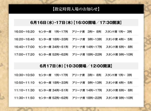 入場に関しては、時間指定入場となります。