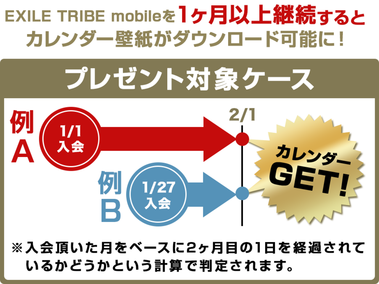 ¦ƒJƒŒƒ“ƒ_[•ÇŽ†‚̃_ƒEƒ“ƒ[ƒh‚É‚ÍEXILE TRIBE mobile1ƒ–ŒŽˆÈã‚ÌŒp‘±‚ª•K—v‚ƂȂè‚Ü‚·B
