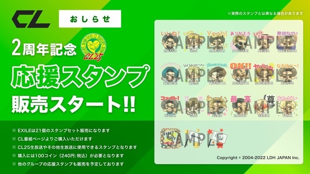 また、この度CL2周年を記念してCL応援スタンプの販売がスタートしました。