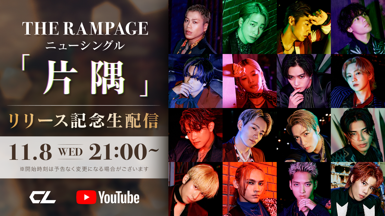 11/8(…)‚É””„‚ƂȂéTHE RAMPAGE NEW SINGLEw•Ћ÷x‚ÌƒŠƒŠ[ƒX‚ð‹L”O‚µ‚ÄA11/8(…)‚ÉYouTubeECL‚ł̶”zM‚ªŒˆ’肵‚Ü‚µ‚½I