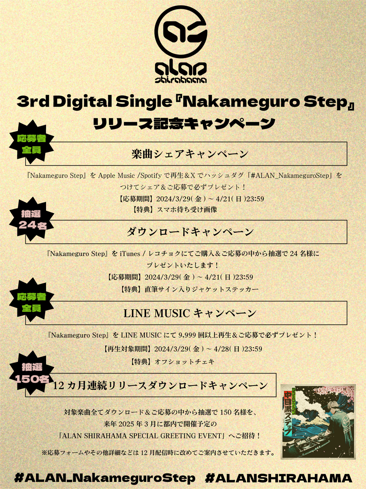 3/29(‹à)”zMŠJŽn‚Ì3rd Digital SinglewNakameguro Stepx‚ÌƒŠƒŠ[ƒX‚ð‹L”O‚µ‚ÄAƒLƒƒƒ“ƒy[ƒ“‚ÌŽÀŽ{‚ªŒˆ’肵‚Ü‚µ‚½I