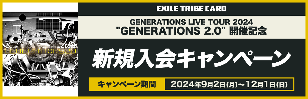 LDHƒIƒtƒBƒVƒƒƒ‹ƒNƒŒƒWƒbƒgƒJ[ƒh“EXILE TRIBE CARD”‚Å‚ÍwGENERATIONS LIVE TOUR 2024 "GENERATIONS 2.0"xŠJÂð‹L”O‚µ‚ÄV‹K“ü‰ïƒLƒƒƒ“ƒy[ƒ“‚ðŽÀŽ{’†‚Å‚·I