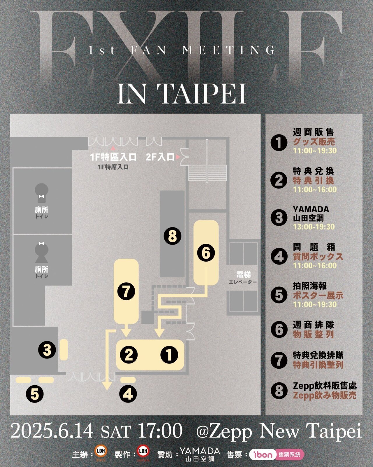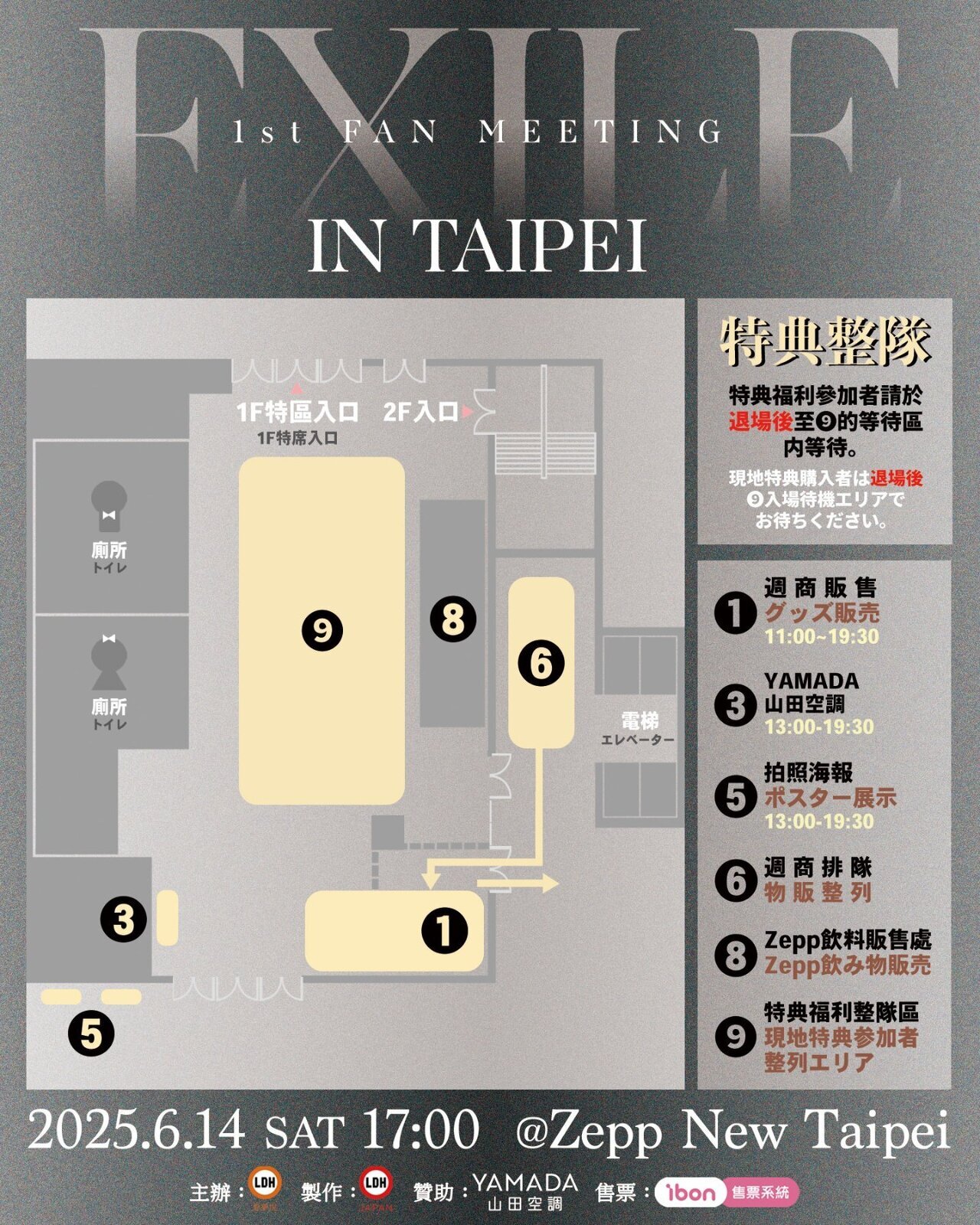 EXILEとして、初の台北でのファンミーティング『EXILE 1st FAN MEETING IN TAIPEI』が6/14(土)にZepp New Taipeiにて開催されることが決定しました!