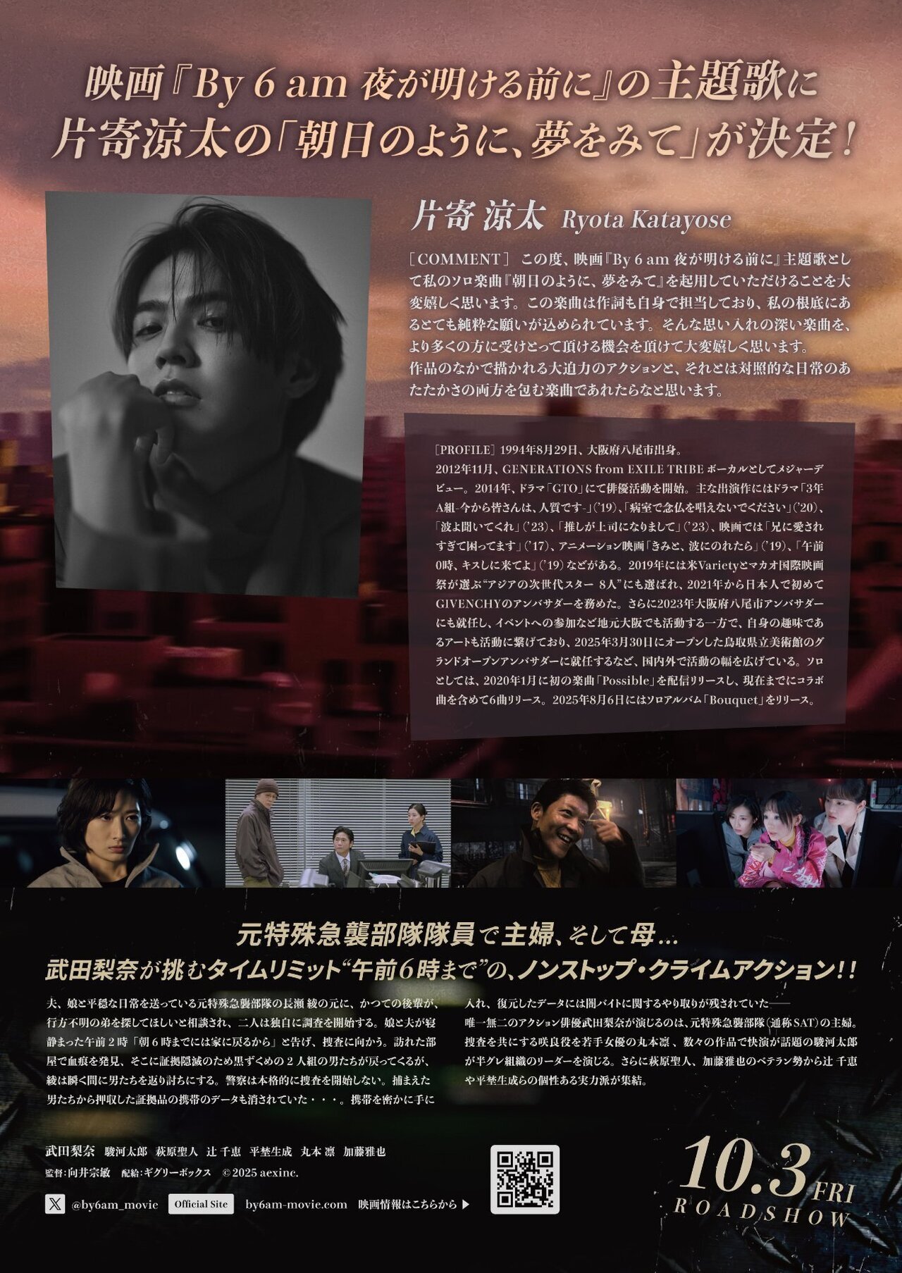 10/3(金)公開 映画『By 6 am 夜が明ける前に』の主題歌に片寄涼太のソロ楽曲「朝日のように、夢をみて」が決定しました!
