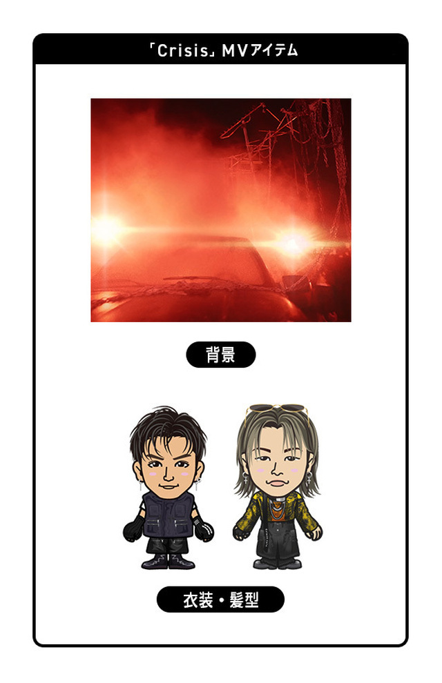 EXILE TRIBE mobileマイページ 2025.11.11 【EXILE TRIBE mobileマイページ】零×YAMASHO「Crisis」MVアイテム配信!! EXILE TRIBE mobileマイページでは、 零×YAMASHO「Crisis」のMV公開を記念して、 MVアイテムを配信します!! 是非MVアイテムをGETして、着せ替えを楽しみましょう! ※「Crisis」MVアイテムは、零×YAMASHOのアバターのみ着用可能です。 ※川村壱馬【A】【B】【C】のアバターは、「Crisis」MV髪型を着用することができません。 ※山本彰吾【A】【B】【C】のアバターは、「Crisis」MV髪型を着用することができません。