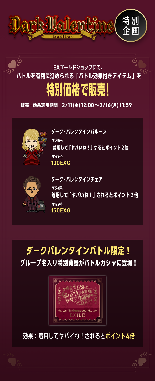 EXILE TRIBE mobileƒ}ƒCƒy[ƒW‚Å‚ÍAƒ_[ƒNEƒoƒŒƒ“ƒ^ƒCƒ“ƒoƒgƒ‹‚ðŠJµ‚Ü‚·!!
