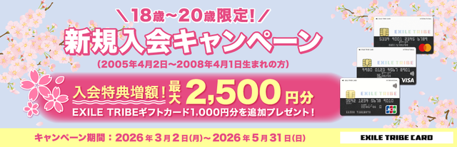 LDHƒIƒtƒBƒVƒƒƒ‹ƒNƒŒƒWƒbƒgƒJ[ƒh"EXILE TRIBE CARD"‚Å‚ÍAV‹K“ü‰ïƒLƒƒƒ“ƒy[ƒ“‚ðŽÀŽ{’†‚Å‚·I