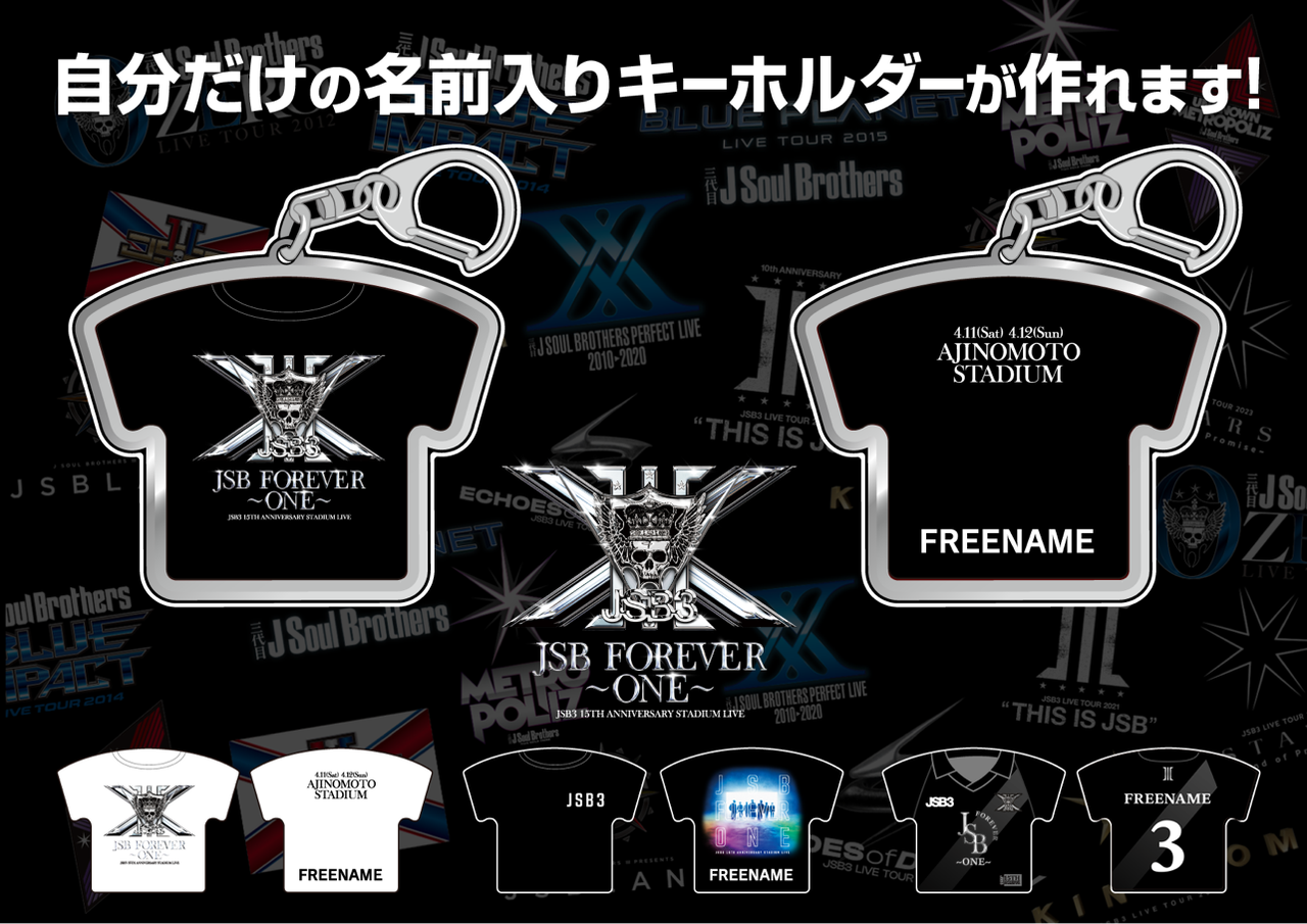 3/20(金・祝)より、EXILE TRIBE STATION TOKYOにて、名入れができるキーホルダー「EXILE TRIBE CUSTOM KEYHOLDER」の『三代目 J SOUL BROTHERS 15TH ANNIVERSARY STADIUM LIVE "JSB FOREVER 〜ONE〜"』デザインが販売決定!!