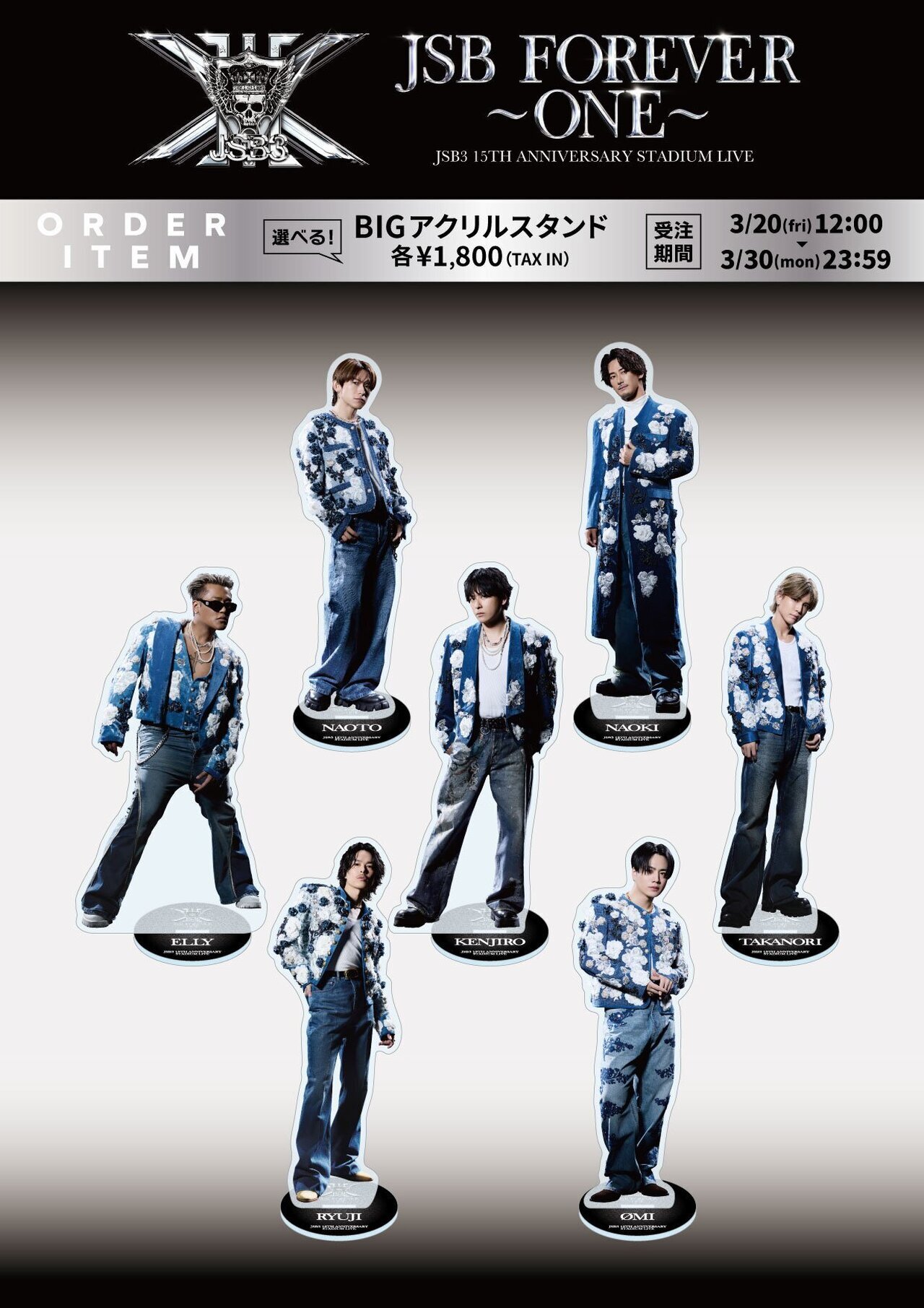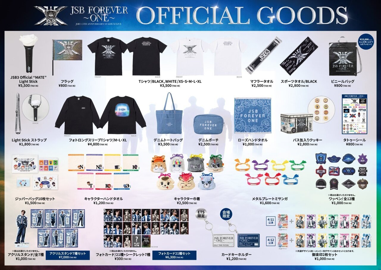 4/11(土)、4/12(日)に開催される『三代目 J SOUL BROTHERS 15TH ANNIVERSARY STADIUM LIVE "JSB FOREVER 〜ONE〜"』味の素スタジアム公演のオフィシャルグッズが解禁!