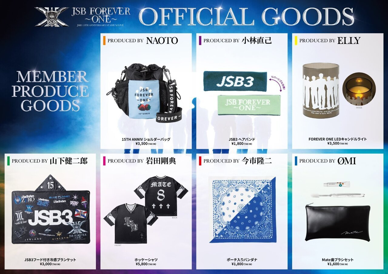 さらに、LIVEを盛り上げるマストアイテムのJSB3 Official “MATE” Light Stickや、メンバープロデュースグッズもお見逃しなく!