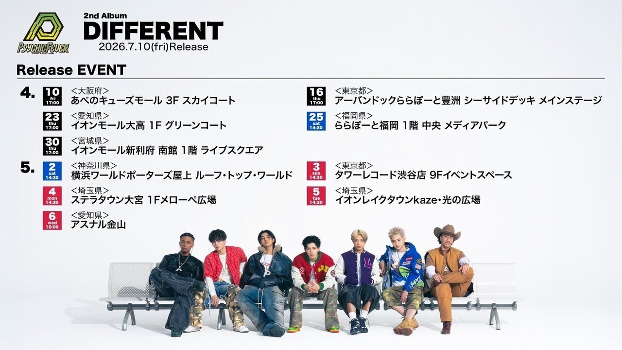 PSYCHIC FEVER 2nd ALBUM『DIFFERENT』発売を記念して特典会の開催が決定しました!