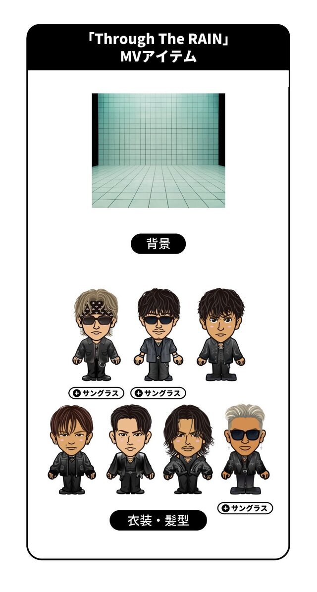 ※「Through The RAIN」MVアイテムは、三代目 J SOUL BROTHERSのアバターのみ着用可能です。
